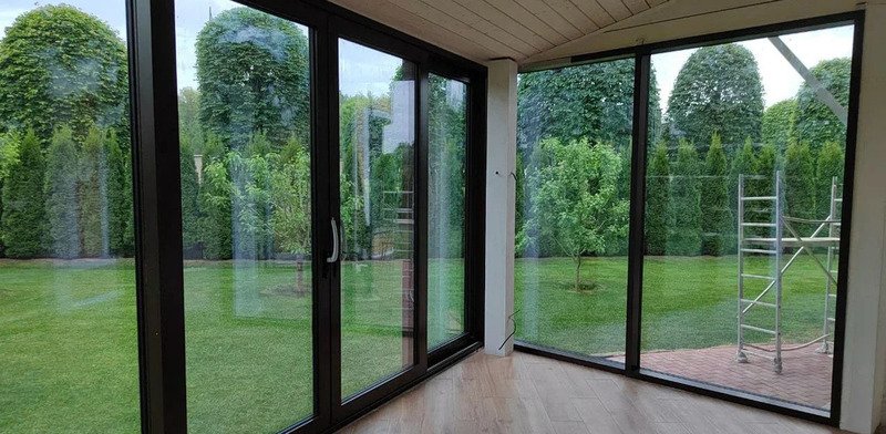 Любые масштабы. Металл позволяет создавать огромные панорамные окна «в пол» без риска, что створка провиснет под собственным весом.